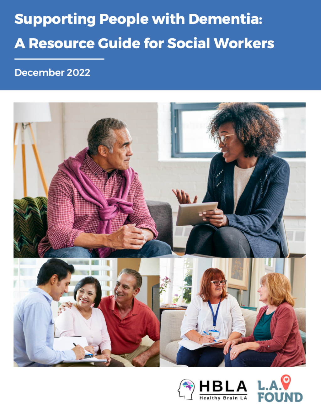 A resource to support the Healthy Brain LA (HBLA) Coalition’s education campaign on the early detection domain. This resource focuses on professional-facing education to help social workers recognize the signs and symptoms of dementia when conducting patient or client assessments. The 9-page resource guide aims to provide social workers with resources to enhance their knowledge and skills in working with people living with dementia, their families, and caregivers. The entire resource can be found on the LA County Department of Public Health website.