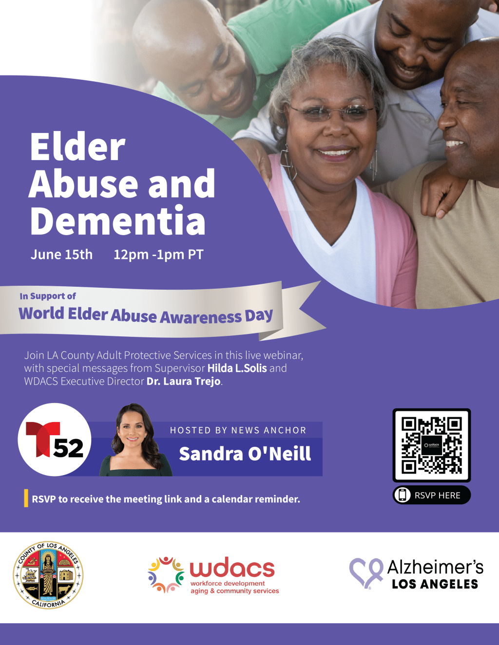 I led the production and creative direction of the Elder Abuse and Dementia Awareness Webinar for the LA Found program in 2022. This webinar was funded by the Healthy Brain Initiative: Los Angeles grant and was in collaboration with the LA County Department of Public Health. The event was hosted by Telemundo 52 news anchor Sandra O’Neill, with a special video message from the Los Angeles District 1 Board Supervisor, Hilda L. Solis.