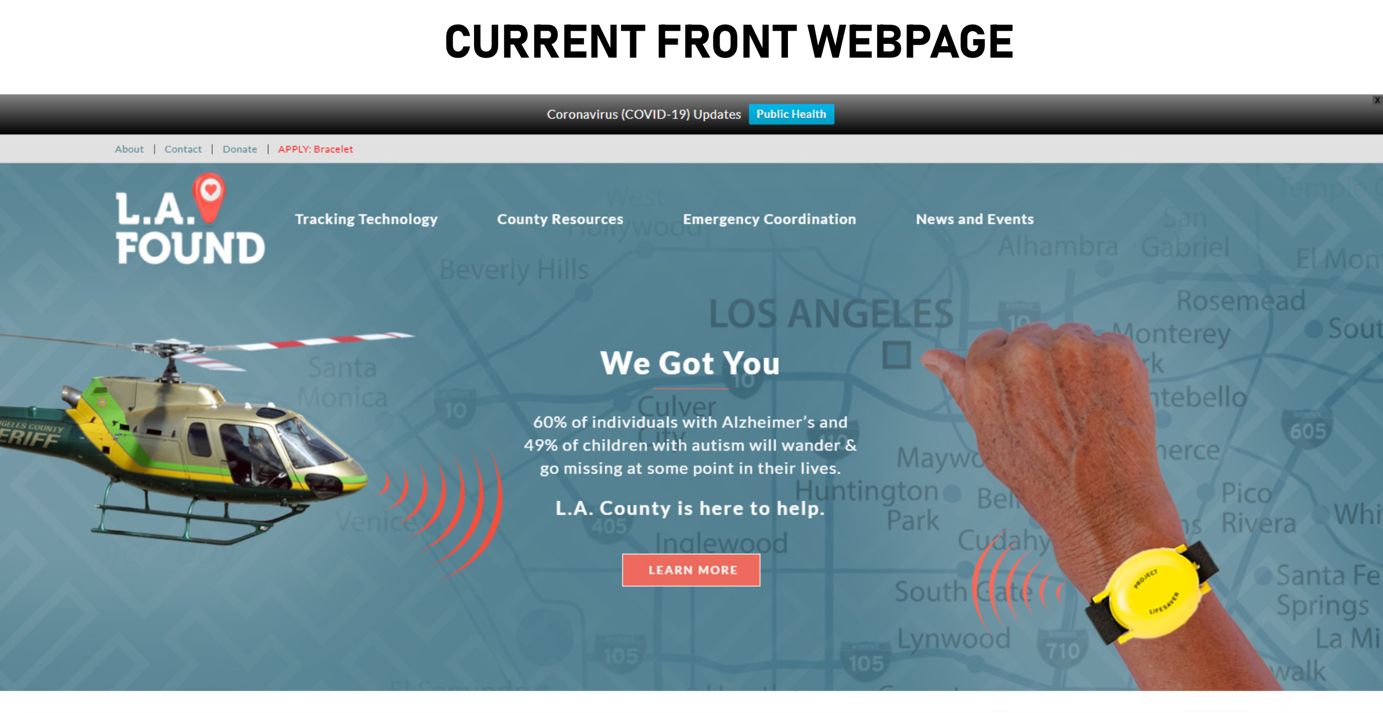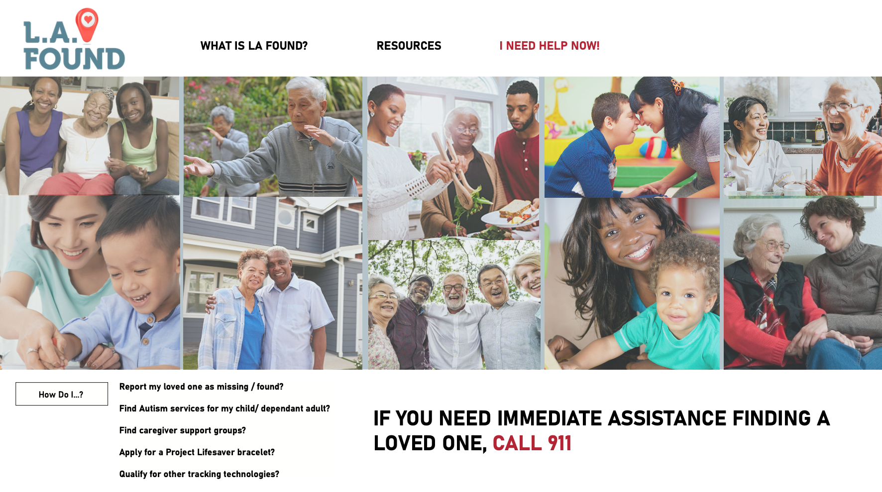 Phase I mockup to redesign the LA Found website. It elevates the website to include graphics, stories, and resources catering to families and caregivers of individuals with Alzheimer’s disease, autism, or other cognitive impairments. The website facelift represents diverse families, seniors, and children LA Found serves in the LA community. The website was simplified to include easy-to-access resources for first responders and caregivers, how to find immediate help, and who to call when someone goes missing.